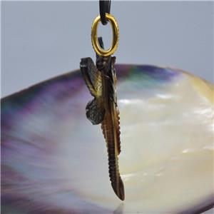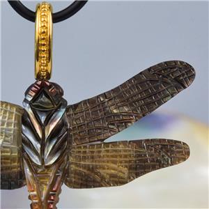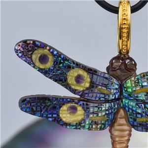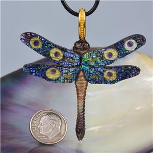 | | | | DRAGONFLY PENDANT CARVED MULTICOLOR SHELL & GOLD VERMEIL over STERLING SILVER | | | Item # | : | 183 17062 | | | | Type of carving | : | Multicolor Purple Clam shell, Paua Abalone shell & black and golden yellow Mother-of-Pearl shell carving three-dimensional carved pendant (amulet / charm) | | | | Design | : | Ornate DRAGONFLY ~ 3-dimentional carving in exceptional fine details. | | | | Fauna & Flora Celebration Collection | : | Our celebration collection features vibrant leaves and flowers, as well as captivating creatures, all inspired by nature. Our passion for flora and fauna motivates us to craft these timeless creations. Our collection is dominated by perennial favourites like flowers, leaves, and other natural creations. Our collection has a natural appearance because of the methodical arrangement of colorful gems, carefully selected mother-of-pearl, and stones, which produce a balanced and elegant effect. One of the most delicate and breathtakingly beautiful creatures in the world flutters into our collection. Some of our most magical jewelry is inspired by the butterfly, which is whimsically colorful and so light and graceful on the wing. Pearls, Tsavorites, Rubies, Sapphires, Diamonds and other precious gemstones are prominently used in our creations. | | | | Material | : | Natural Purple Clam shell, Paua Abalone shell, golden & bronze black Mother-of-Pearl and 18K Gold Vermeil over genuine solid Sterling Silver ~ 18K gold-plated 3-microns. | | | | Plating | : | Very thick and durable ~ 3-microns 18K yellow Gold Vermeil over solid 925 Sterling Silver | | | | Amount | : | 1 (one) individual piece * All photos are taken from the actual item * | | | | Weight | : | approx. 8.21 grams | | | | Size | : | Length: approx. 63.03 mm = 2.48 inches Width: approx. 56.30 mm Depth: approx. 6.77 mm All measurements are taken at the widest points | | | | Bail | : | The bail inside measurement is 10.10 x 5.20 mm and will fit a chain, rope or cord with a diameter of 5.00 mm and smaller. The cord shown in the photos is for display only and is not included. | | | | Origin | : | Hand-carved by Balinese master-craftsmen The silverwork is handmade by out in-house master silversmiths. | | | | Color | : | Multicolor, purple, yellow, bronze black and gold | | | | Quality | : | New and excellent | | | | Treatment | : | None ~ 100 % natural shell which is hand-carved and polished | | | | Hand-crafted | : | This jewelry is made using ancient traditional techniques. Each piece is handmade and is not a machine mass produced item. Each piece, silver parts and carvings are made one by one which make each piece a one-of-a-kind. | | | | Hallmark stamp | : | This amulet pendant is hallmark stamped 925 on the bail. | | | | Definition purple clam shell | : | Purple Clam Shell ~ Nuttallia obscurata, the purple mahogany clam, dark mahogany clam, varnish clam or savory clam, is a species of saltwater clam, a marine bivalve mollusk in the family Psammobiidae. The valves are thin, relatively shallow, and almost oval in shape. They can reach 6.4 cm (2.5 inches) long. Individuals can achieve a maximum weight of 45 grams. The exterior of the valves is covered in a shiny brown periostracum, hence one of its common names, "varnish clam". The periostracum is often worn away at the umbo. There are concentric rings on the outside of the valves which can be observed where the periostracum has been removed. The interior of the valves is deep purple to almost white in some individuals. The prominent hinge ligament is external to the valves. Nuttallia obscurata has a large white, muscular foot that it uses to dig in the sand and for propulsion. The animal has two long, white, separate siphons. These clams are found in the mid to high intertidal zone, buried in sand, gravel, or silt, from just below the surface to 20 centimetres (7.9 inches) deep. They have greater tolerance for salinity conditions than native clams and are sometimes found in brackish waters near freshwater seeps. The species is native to Japan, Korea, China, and Indonesia. It has been naturalized in British Columbia, Washington and Oregon. Its range includes the coast of Vancouver Island, the Strait of Georgia, Puget Sound, and south along the coast to Coos Bay. It is considered an invasive species in North America. Nuttallia obscurata can live at least six years. They begin life as free-swimming plankton. This planktonic stage can last from 3 to 8 weeks before they settle to the bottom as recognizable clams. They become reproductively mature at one year old. This species is protandrous, where the young forms are male and then become female later in life. In each population, there are males and females in approximately equal numbers, and 4-5% of the population is hermaphroditic. In some populations, the sex ratio skews towards males for reasons that are not known. Females have been observed to produce between 40,000 and 6,000,000 eggs during the summer breeding season. These oocytes are 55 micrometres (0.0022 inches) in diameter. Fertilization takes place by broadcast spawning. Nuttallia obscurata has two methods of feeding. It is a filter feeder, drawing water in with one siphon and straining out algae and other nutrients. It then ejects water and waste from its other siphon. This species also has the ability to gather material from the surrounding sand with its foot, sweeping detritus to its mouth. | | | | Paua Abalone shell | : | Paua shell is produced by the New Zealand Abalone (Haliotis iris), the most colorful shell. The name Paua is the name the Maori call the shell we know as Abalone from the deep waters of the South Island of New Zealand. These waters are a lot colder being so close to the Antarctic Basin. This is why the colors of Paua Abalone are more vibrant and deeper in color than any other Abalone found in the world. The lustrous iridescence is a rainbow blue, green and various shades of red. This Paua Abalone shell is an inspiration from nat