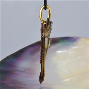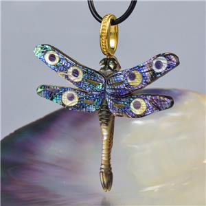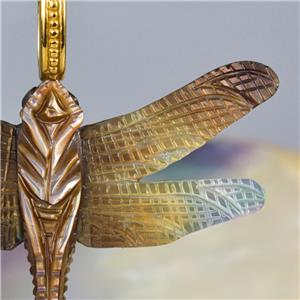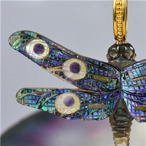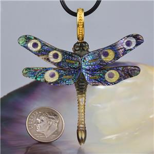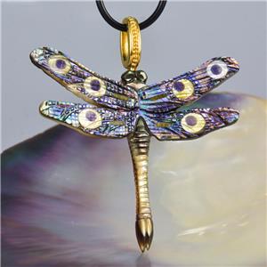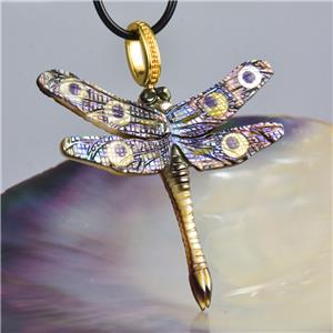 | | | | DRAGONFLY PENDANT CARVED MULTICOLOR SHELL & GOLD VERMEIL over STERLING SILVER | | | Item # | : | 183 17168 | | | | Type of carving | : | Multicolor Paua Abalone shell, Purple Clam shell, black and golden yellow Mother-of-Pearl shell carving three-dimensional carved pendant (amulet / charm) | | | | Design | : | Ornate DRAGONFLY ~ 3-dimentional carving in exceptional fine details. | | | | Fauna & Flora Celebration Collection | : | Our celebration collection features vibrant leaves and flowers, as well as captivating creatures, all inspired by nature. Our passion for flora and fauna motivates us to craft these timeless creations. Our collection is dominated by perennial favourites like flowers, leaves, and other natural creations. Our collection has a natural appearance because of the methodical arrangement of colorful gems, carefully selected mother-of-pearl, and stones, which produce a balanced and elegant effect. One of the most delicate and breathtakingly beautiful creatures in the world flutters into our collection. Some of our most magical jewelry is inspired by the butterfly, which is whimsically colorful and so light and graceful on the wing. Pearls, Tsavorites, Rubies, Sapphires, Diamonds and other precious gemstones are prominently used in our creations. | | | | Material | : | Natural Paua Abalone shell, Purple Clam shell, golden & bronze black Mother-of-Pearl and 18K Gold Vermeil over genuine solid Sterling Silver ~ 18K gold-plated 3-microns. | | | | Plating | : | Very thick and durable ~ 3-microns 18K yellow Gold Vermeil over solid 925 Sterling Silver | | | | Amount | : | 1 (one) individual piece * All photos are taken from the actual item * | | | | Weight | : | approx. 7.27 grams | | | | Size | : | Length: approx. 61.95 mm = 2.42 inches Width: approx. 54.79 mm Depth: approx. 5.66 mm All measurements are taken at the widest points | | | | Bail | : | The bail inside measurement is 10.10 x 5.20 mm and will fit a chain, rope or cord with a diameter of 5.00 mm and smaller. The cord shown in the photos is for display only and is not included. | | | | Origin | : | Hand-carved by Balinese master-craftsmen The silverwork is handmade by out in-house master silversmiths. | | | | Color | : | Multicolor, purple, yellow, bronze black and gold | | | | Quality | : | New and excellent | | | | Treatment | : | None ~ 100 % natural shell which is hand-carved and polished | | | | Hand-crafted | : | This jewelry is made using ancient traditional techniques. Each piece is handmade and is not a machine mass produced item. Each piece, silver parts and carvings are made one by one which make each piece a one-of-a-kind. | | | | Hallmark stamp | : | This amulet pendant is hallmark stamped 925 on the bail. | | | | Paua Abalone shell | : | Paua shell is produced by the New Zealand Abalone (Haliotis iris), the most colorful shell. The name Paua is the name the Maori call the shell we know as Abalone from the deep waters of the South Island of New Zealand. These waters are a lot colder being so close to the Antarctic Basin. This is why the colors of Paua Abalone are more vibrant and deeper in color than any other Abalone found in the world. The lustrous iridescence is a rainbow blue, green and various shades of red. This Paua Abalone shell is an inspiration from nature’s spectrum of rainbow colors. | | | | Definition purple clam shell | : | Purple Clam Shell ~ Nuttallia obscurata, the purple mahogany clam, dark mahogany clam, varnish clam or savory clam, is a species of saltwater clam, a marine bivalve mollusk in the family Psammobiidae. The valves are thin, relatively shallow, and almost oval in shape. They can reach 6.4 cm (2.5 inches) long. Individuals can achieve a maximum weight of 45 grams. The exterior of the valves is covered in a shiny brown periostracum, hence one of its common names, "varnish clam". The periostracum is often worn away at the umbo. There are concentric rings on the outside of the valves which can be observed where the periostracum has been removed. The interior of the valves is deep purple to almost white in some individuals. The prominent hinge ligament is external to the valves. Nuttallia obscurata has a large white, muscular foot that it uses to dig in the sand and for propulsion. The animal has two long, white, separate siphons. These clams are found in the mid to high intertidal zone, buried in sand, gravel, or silt, from just below the surface to 20 centimetres (7.9 inches) deep. They have greater tolerance for salinity conditions than native clams and are sometimes found in brackish waters near freshwater seeps. The species is native to Japan, Korea, China, and Indonesia. It has been naturalized in British Columbia, Washington and Oregon. Its range includes the coast of Vancouver Island, the Strait of Georgia, Puget Sound, and south along the coast to Coos Bay. It is considered an invasive species in North America. Nuttallia obscurata can live at least six years. They begin life as free-swimming plankton. This planktonic stage can last from 3 to 8 weeks before they settle to the bottom as recognizable clams. They become reproductively mature at one year old. This species is protandrous, where the young forms are male and then become female later in life. In each population, there are males and females in approximately equal numbers, and 4-5% of the population is hermaphroditic. In some populations, the sex ratio skews towards males for reasons that are not known. Females have been observed to produce between 40,000 and 6,000,000 eggs during the summer breeding season. These oocytes are 55 micrometres (0.0022 inches) in diameter. Fertilization takes place by broadcast spawning. Nuttallia obscurata has two methods of feeding. It is a filter feeder, drawing water in with one siphon and straining out algae and other nutrients. It then ejects water and waste from its other siphon. This species also has the ability to gather material from the surrounding sand with its foo