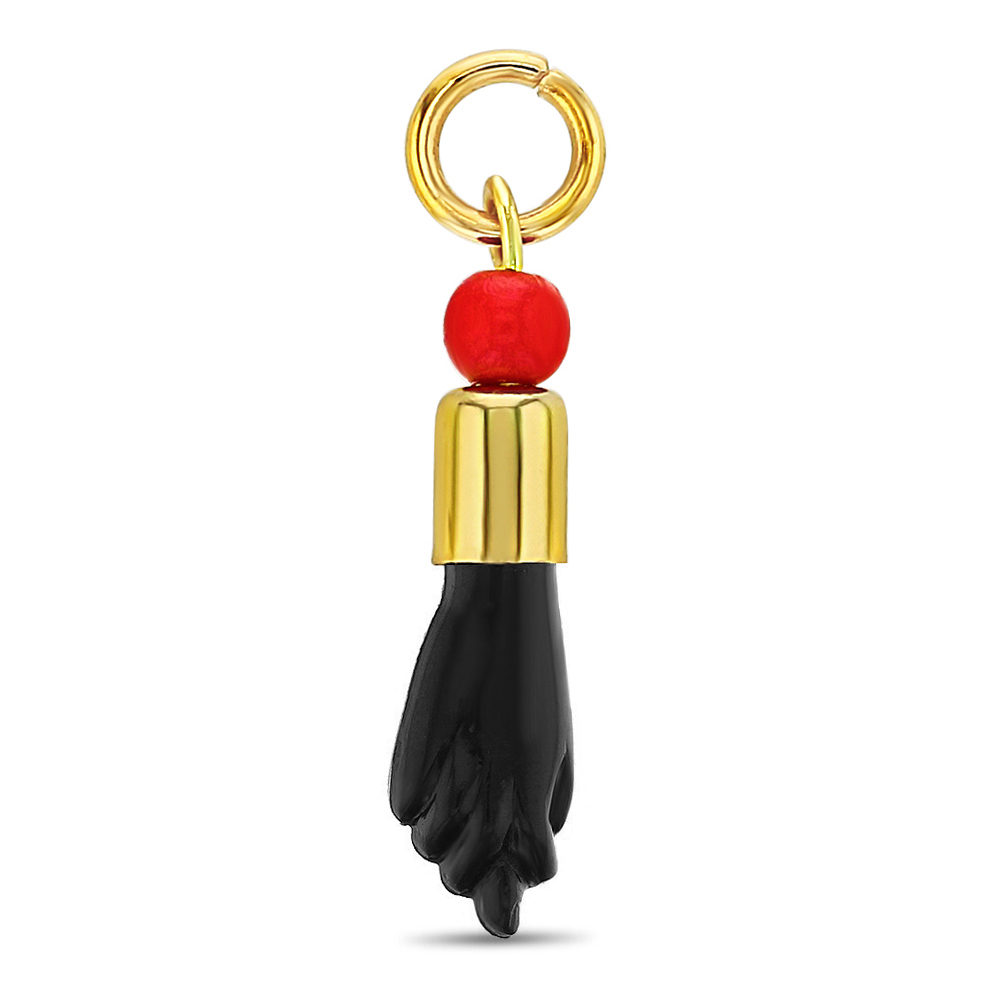 An iconic piece of protection jewelry, this Figa hand pendant is considered by many cultures a good luck charm. In ancient Greece, Figa hand jewelry was believed to bring fertility and good luck and was also designed to ward off evil. Also in Portugal and Brazil, images of Figa hands are used in good luck talismans. This simulated azabache Figa hand protection pendant is believed to bring you not only good luck but also ward off bad energy while staying in style!