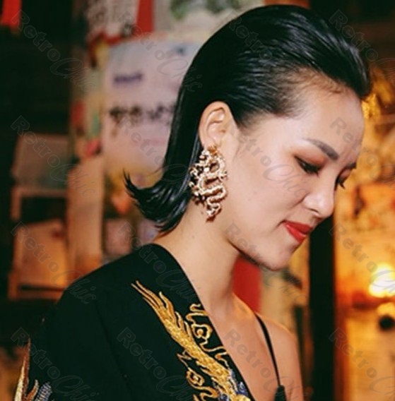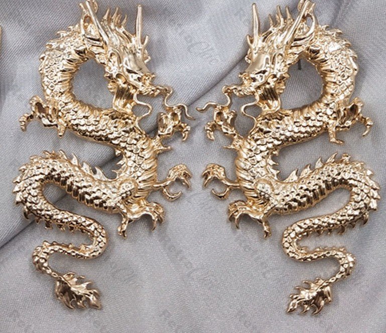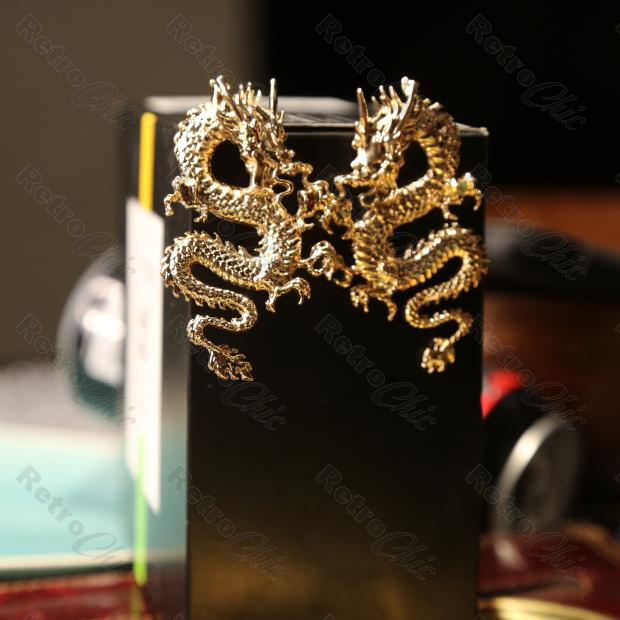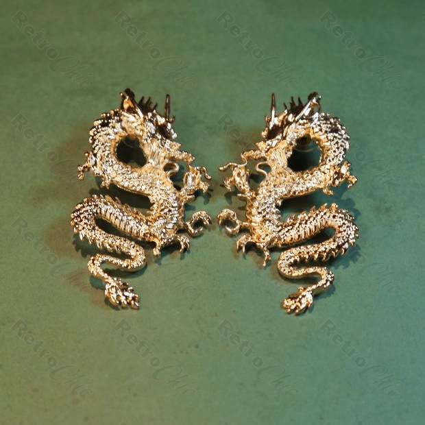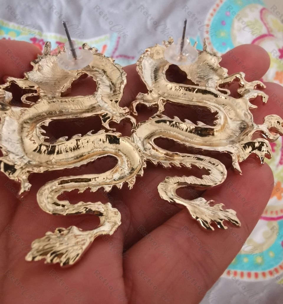 Oversize Large Dragon Statement Gold Plated Earrings Large Snake Mirrored Pair