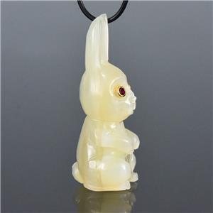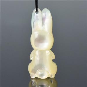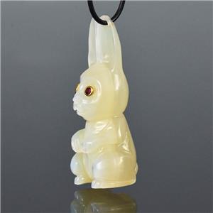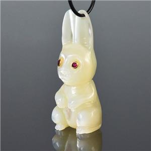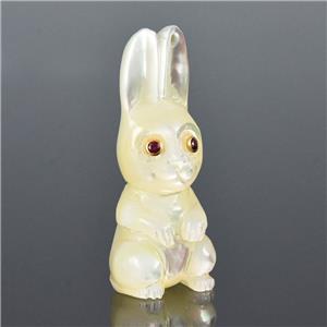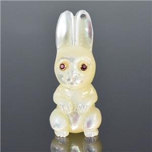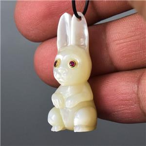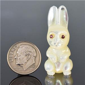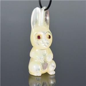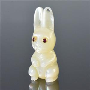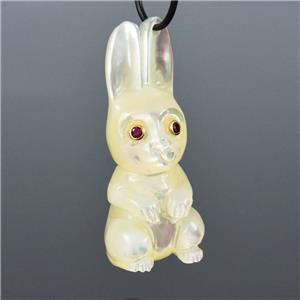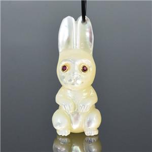 | | RABBIT BUNNY FOCAL BEAD PENDANT CARVED MOTHER-of-PEARL with RUBY EYES |
