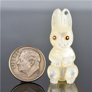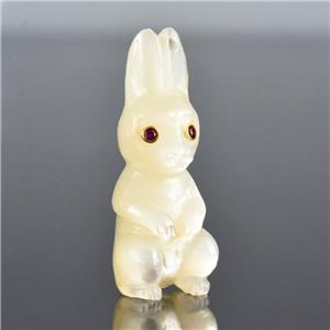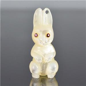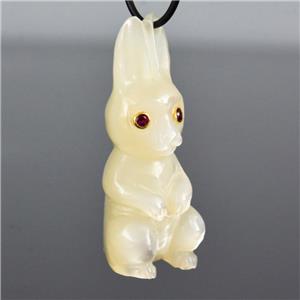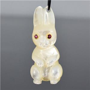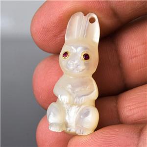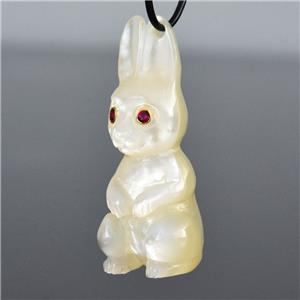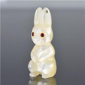 | | RABBIT BUNNY FOCAL BEAD PENDANT CARVED MOTHER-of-PEARL with RUBY EYES |
