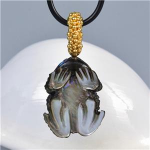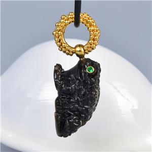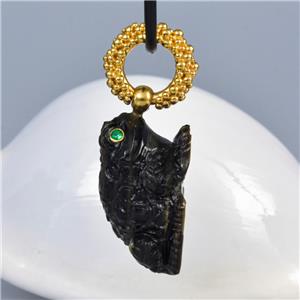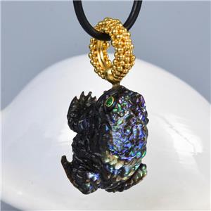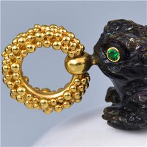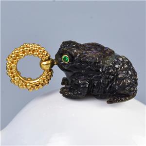 | | Design | : | Ornate TOAD FROG design with a fine Bali granulation bail ~ 3-dimentional carving in exceptional fine details. The eyes are made out of bezel-set in 18K Gold Vermeil over Sterling Silver inlayed genuine natural gemstones. | |