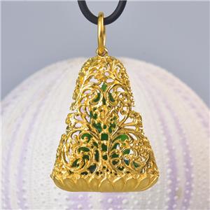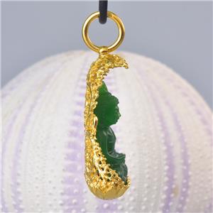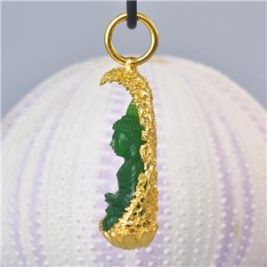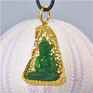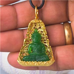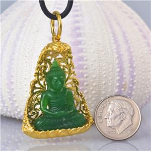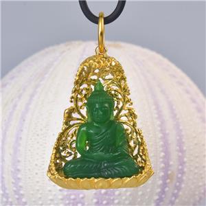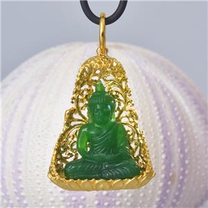 | | | | GREEN CHALCEDONY STATUE of the BUDDHA SEATED under a VERMEIL over STERLING BODHI TREE | | | | Item # | : | 183 1022 | | | | Type of carving | : | Green Garut Chalcedony miniature statue of the Buddha in deep relief | | | | Design | : | Pendant / amulet with a magnificent image of the Buddha carving in beautiful and exceptional details. The miniature statue of the Buddha is seated in a spectacular ornate 18K Gold Vermeil over solid Sterling Silver under a sacred Bodhi-tree ( “tree of awakening” ). | | | | Material | : | Natural green Garut Chalcedony and 18K Gold Vermeil over genuine solid 925 Sterling Silver ~ 18K gold-plated 3-microns. | | | | Plating | : | Very thick and durable ~ 3-microns 18K yellow Gold Vermeil over solid 925 Sterling Silver | | | | Amount | : | 1 (one) individual piece * All photos are taken from the actual item * | | | | Weight | : | approx. 13.16 grams | | | | Size | : | Length / height: approx. 46.65 mm = 1.83 inches Width: approx. 28.58 mm Depth: approx. 11.14 mm All measurements are taken at the widest points | | | | Bail | : | The bail inside measurements are 7.00 x 7.30 mm and will fit a chain, rope or cord with a diameter of 7.20 mm and smaller. The cord shown in the photos is for display only and is not included. | | | | Origin | : | Hand-carved by Balinese master-craftsmen The silverwork is handmade by out in-house master silversmiths. | | | | Color | : | Green and gold | | | | Quality | : | New and excellent | | | | Treatment | : | None ~ 100 % natural gemstone which is hand-carved and polished | | | | Hand-crafted | : | This jewelry is made using ancient traditional techniques. Each piece is handmade and is not a machine mass produced item. Each piece, silver parts and carvings are made one by one which make each piece a one-of-a-kind. | | | | Hallmark stamp | : | This pendant is hallmark stamped 925. | | | | Origin of Chalcedony gemstone | : | Garut West Java / Indonesia Garut is a district and town in West Java of Indonesia. | | | | About Green Garut Chalcedony | : | Indonesian Gemstones are plentiful and are often very exotic, just as the origin itself. Indonesian gems include many unique varieties. Chalcedony is a gemstone species which belongs to the quartz group of minerals. Technically, chalcedony is the gemological term applicable for all varieties of quartz in cryptocrystalline form, which can occur in a wide range of different colors, sizes and patterns. However today, the term, 'chalcedony', is most often used in reference to a very specific type of cryptocrystalline quartz, often referred to as 'actual chalcedony'. To minimize confusion, other varieties of cryptocrystalline quartz are traded under their own individual trade names, such as 'banded agate', 'carnelian' or 'jasper'. The gemstone 'chalcedony' is distinguished by translucency and its solid. As the defining mineral for 7 on the Mohs scale, chalcedony quartz is known to set the standard when it comes to gemstone hardness for jewelry gemstones. The actual name 'chalcedony' originated from the Latin word 'Chalcedonius', which is thought to be derived from 'Chalcedon', an ancient seaport of Asia Minor, now Kadikoy, Turkey. Chalcedony is known to take an excellent polish, in fact, after a prolonged polish, some chalcedony varieties can exhibit a glow that seems to emanate from within. Chalcedony quartz is without a doubt one of the most significant materials of all time. An extremely rare variety of Yellow Chalcedony is found in Garut West Java of Indonesia. Yellow Chalcedony is a "Stone of Optimism." Chalcedony protects against negative influences, increases energy and promotes emotional balance. It absorbs negativity and dissipates it, allowing you to feel the warmth of inner-stability and self-assurance. Chalcedony Gemstone Mythology, Metaphysical and Healing Powers Chalcedony has been one of the most treasured gemstones throughout many ancient civilizations. It is believed that as early as the Bronze Age, chalcedony was prized as a gem throughout areas surrounding the Mediterranean, owing to the discoveries of archaeologists. Many chalcedony seals and other forms of jewelry and fabricated tools have been discovered dating back as early as 1800 BC. Chalcedony has been used and prized by ancient Romans, Greeks, Babylonians and Assyrians alike. Many Native American tribes consider chalcedony to be sacred and most often use it in traditional ceremonial gatherings, particularly in efforts to stabilize and strengthen the bonds between tribes. Chalcedony is believed to help emotional balance and it is thought to be able to strengthen stamina and endurance. It encourages kindness, responsiveness, receptivity, generosity, charity and friendliness in those who wear it. It is also thought to possess the unique ability to balance all of the energies of the body, mind and spirit. | | | | What is Gold Vermeil? | : | VERMEIL, which is pronounced "vehr-MAY," is 925 Sterling Silver with is plated with Gold. Vermeil is a combination of Sterling Silver and Gold commonly used as a component in jewelry. A typical example is Sterling Silver coated with 18K or 24K Gold. To be considered VERMEIL, the gold must be at least 10 karats (42%) and be at least 2.5 micrometers thick. In the US and various other countries, Sterling Silver covered first with a base metal (such as nickel) and then plated with Gold cannot be sold as vermeil without disclosing that it contains base metal. The word "VERMEIL" is a French word which came into use in the English language, mostly in America, in the 19th century as an alternative for the usual term silver-gilt. Vermeil can be produced by either fire-gilding or electrolysis. The original fire-gilding process was developed in France in the mid-18th century; however, France later banned the production of vermeil because over time artisans developed blindness due to mercury involved in the process. Today, VERMEIL is produced by electrolysis which is much safer than f