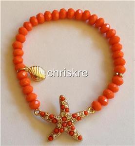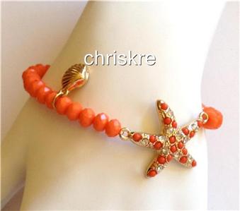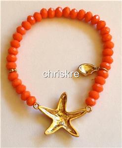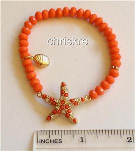 Coral Starfish Bracelet Crystals Gold Shells Beaded Nautical Island Beach Plated
