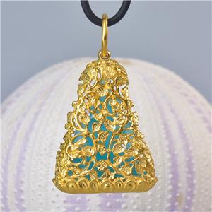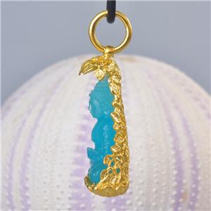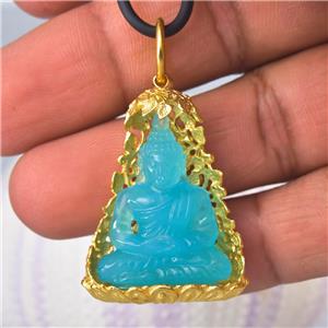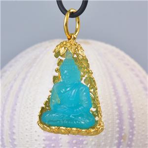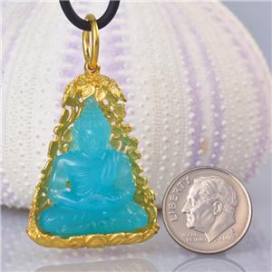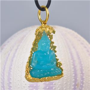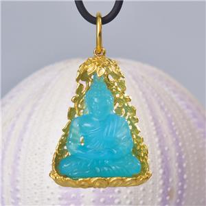 | | | | PENDANT CHALCEDONY IMAGE of the BUDDHA SEATED under a VERMEIL over STERLING BODHI TREE | | | | Item # | : | 183 1019 | | | | Type of carving | : | Blue Garut Chalcedony miniature statue of the Buddha in deep relief | | | | Design | : | Pendant / amulet with a magnificent image of the Buddha carving in beautiful and exceptional details. The miniature statue of the Buddha is seated in a spectacular ornate 18K Gold Vermeil over solid Sterling Silver under a sacred Bodhi-tree with leaves ( “tree of awakening” ). | | | | Material | : | Natural blue Garut Chalcedony and 18K Gold Vermeil over genuine solid 925 Sterling Silver ~ 18K gold-plated 3-microns. | | | | Plating | : | Very thick and durable ~ 3-microns 18K yellow Gold Vermeil over solid 925 Sterling Silver | | | | Amount | : | 1 (one) individual piece * All photos are taken from the actual item * | | | | Weight | : | approx. 13.48 grams | | | | Size | : | Length / height: approx. 45.89 mm = 1.80 inches Width: approx. 26.96 mm Depth: approx. 11.42 mm All measurements are taken at the widest points | | | | Bail | : | The bail inside measurements are 7.30 x 7.00 mm and will fit a chain, rope or cord with a diameter of 6.90 mm and smaller. The cord shown in the photos is for display only and is not included. | | | | Origin | : | Hand-carved by Balinese master-craftsmen The silverwork is handmade by out in-house master silversmiths. | | | | Color | : | Blue and gold | | | | Quality | : | New and excellent | | | | Treatment | : | None ~ 100 % natural gemstone which is hand-carved and polished | | | | Hand-crafted | : | This jewelry is made using ancient traditional techniques. Each piece is handmade and is not a machine mass produced item. Each piece, silver parts and carvings are made one by one which make each piece a one-of-a-kind. | | | | Hallmark stamp | : | This pendant is hallmark stamped 925. | | | | Origin of Chalcedony gemstone | : | Garut West Java / Indonesia Garut is a district and town in West Java of Indonesia. | | | | About Green Garut Chalcedony | : | Indonesian Gemstones are plentiful and are often very exotic, just as the origin itself. Indonesian gems include many unique varieties. Chalcedony is a gemstone species which belongs to the quartz group of minerals. Technically, chalcedony is the gemological term applicable for all varieties of quartz in cryptocrystalline form, which can occur in a wide range of different colors, sizes and patterns. However today, the term, 'chalcedony', is most often used in reference to a very specific type of cryptocrystalline quartz, often referred to as 'actual chalcedony'. To minimize confusion, other varieties of cryptocrystalline quartz are traded under their own individual trade names, such as 'banded agate', 'carnelian' or 'jasper'. The gemstone 'chalcedony' is distinguished by translucency and its solid. As the defining mineral for 7 on the Mohs scale, chalcedony quartz is known to set the standard when it comes to gemstone hardness for jewelry gemstones. The actual name 'chalcedony' originated from the Latin word 'Chalcedonius', which is thought to be derived from 'Chalcedon', an ancient seaport of Asia Minor, now Kadikoy, Turkey. Chalcedony is known to take an excellent polish, in fact, after a prolonged polish, some chalcedony varieties can exhibit a glow that seems to emanate from within. Chalcedony quartz is without a doubt one of the most significant materials of all time. An extremely rare variety of Yellow Chalcedony is found in Garut West Java of Indonesia. Yellow Chalcedony is a "Stone of Optimism." Chalcedony protects against negative influences, increases energy and promotes emotional balance. It absorbs negativity and dissipates it, allowing you to feel the warmth of inner-stability and self-assurance. Chalcedony Gemstone Mythology, Metaphysical and Healing Powers Chalcedony has been one of the most treasured gemstones throughout many ancient civilizations. It is believed that as early as the Bronze Age, chalcedony was prized as a gem throughout areas surrounding the Mediterranean, owing to the discoveries of archaeologists. Many chalcedony seals and other forms of jewelry and fabricated tools have been discovered dating back as early as 1800 BC. Chalcedony has been used and prized by ancient Romans, Greeks, Babylonians and Assyrians alike. Many Native American tribes consider chalcedony to be sacred and most often use it in traditional ceremonial gatherings, particularly in efforts to stabilize and strengthen the bonds between tribes. Chalcedony is believed to help emotional balance and it is thought to be able to strengthen stamina and endurance. It encourages kindness, responsiveness, receptivity, generosity, charity and friendliness in those who wear it. It is also thought to possess the unique ability to balance all of the energies of the body, mind and spirit. | | | | What is Gold Vermeil? | : | VERMEIL, which is pronounced "vehr-MAY," is 925 Sterling Silver with is plated with Gold. Vermeil is a combination of Sterling Silver and Gold commonly used as a component in jewelry. A typical example is Sterling Silver coated with 18K or 24K Gold. To be considered VERMEIL, the gold must be at least 10 karats (42%) and be at least 2.5 micrometers thick. In the US and various other countries, Sterling Silver covered first with a base metal (such as nickel) and then plated with Gold cannot be sold as vermeil without disclosing that it contains base metal. The word "VERMEIL" is a French word which came into use in the English language, mostly in America, in the 19th century as an alternative for the usual term silver-gilt. Vermeil can be produced by either fire-gilding or electrolysis. The original fire-gilding process was developed in France in the mid-18th century; however, France later banned the production of vermeil because over time artisans developed blindness due to mercury involved in the process. Today, VERMEIL is produced by electrolysis which is much sa