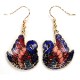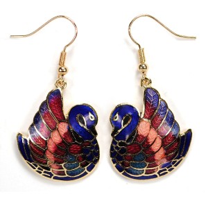 Gold Plated Cloisonne Swan Earrings Blue Love Birds Hand Painted Pair New