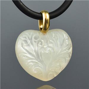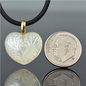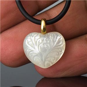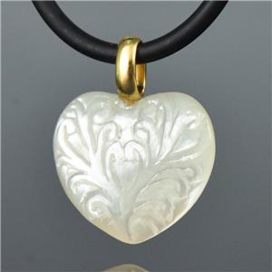 | | HEART PENDANT CARVED WHITE MOTHER-of-PEARL & 18K GOLD VERMEIL over STERLING SILVER |
